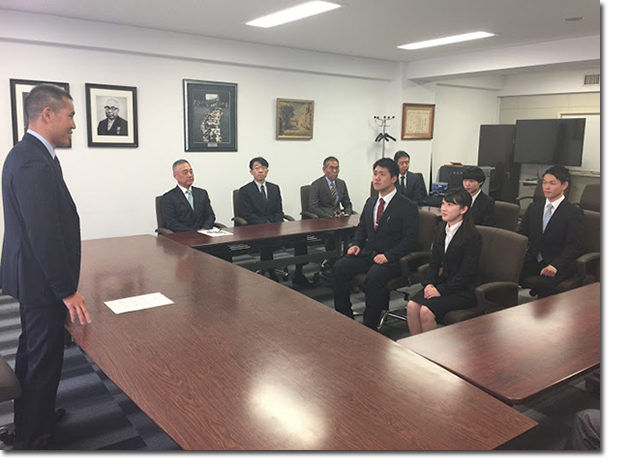 入社式では社長をはじめ、幹部社員より新入社員へそれぞれ歓迎と期待を込めたメッセージが送られました。