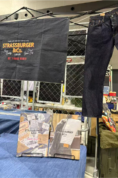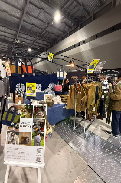 繊維部はなちゅガールとコラボした飯盒ポーチや、デニムキャンプ用品、NSWerで展開しているジャケットやつなぎも出品しました。こちらも持参した在庫が全て完売するほど大好評でした!